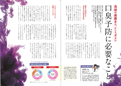 | 臭いに関する特集記事で、口臭に関する項目での取材による記事が記載されました。身近な簡単な口臭予防法に付いて |